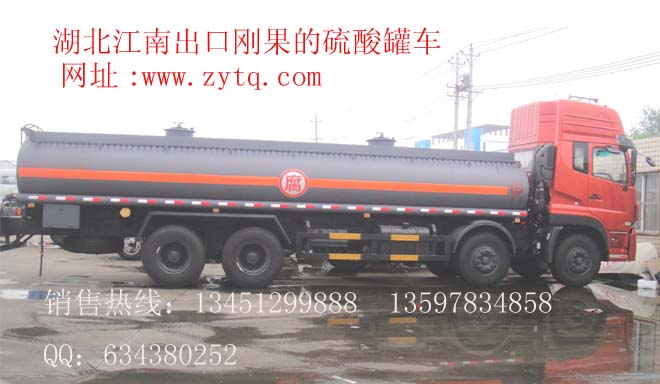 發(fā)布時(shí)間:2012-10-13 10:13:53 瀏覽量:次2010年7月27日,我公司出口了一臺(tái)硫酸罐車(chē)到剛果**,此車(chē)采用東風(fēng)天龍前四后八的的底盤(pán),罐體20立方米車(chē)輛圖片如下